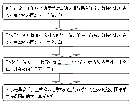 2.非涉農(nóng)專業(yè)家庭經(jīng)濟困難學(xué)生認定流程如下圖所示:
