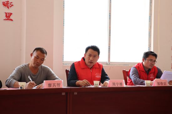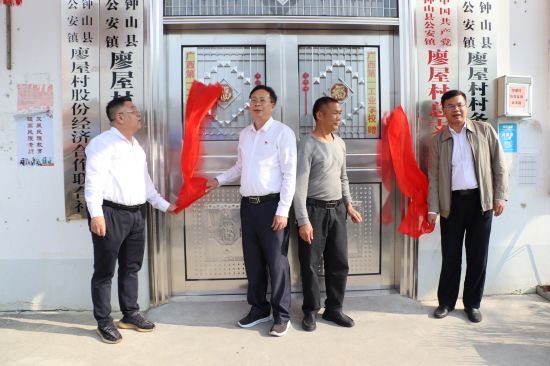 隨后,調(diào)研組對(duì)駐村工作隊(duì)員進(jìn)行慰問。最后,舉行學(xué)校捐贈(zèng)廖屋村委大門儀式,隨著紅色幕布緩緩摘落,嶄新的大門展現(xiàn)在大家眼前。