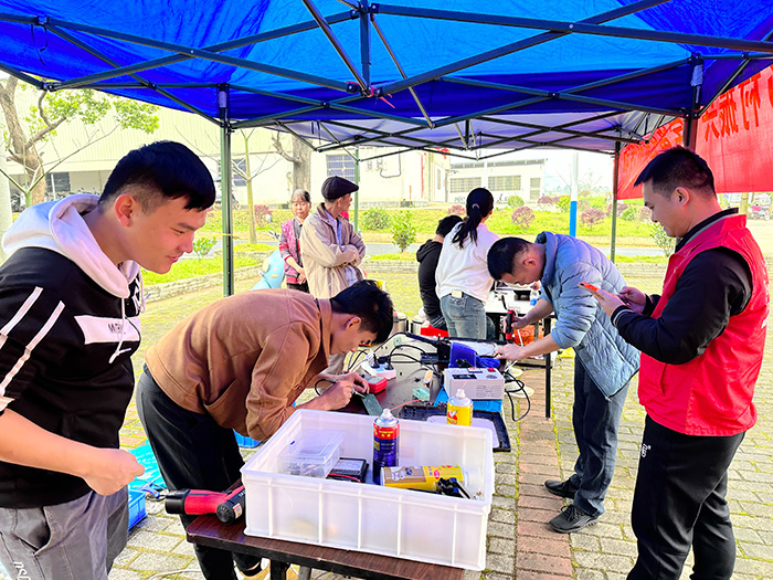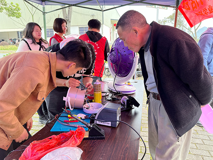 開展家電維修活動。在新民村文化廣場,學(xué)校師生代表開展了家電維修志愿服務(wù)活動,鐘山縣委常委、副縣長陳智出席活動。志愿者們各展其能,一手電線、一手螺絲刀,熟練地進行電子電路元件檢修、重新組裝調(diào)試,很快,一個個有“疑難雜癥”的電器陸續(xù)正常運作起來,共近百臺家電得到維修,贏得了群眾的一致好評。