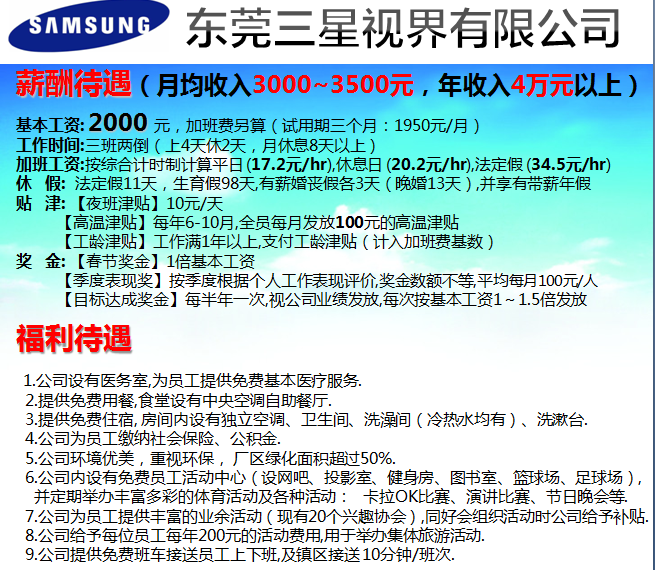 東莞三星視界有限公司招聘信息
