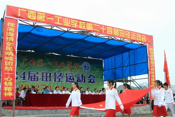 1122日上午,廣西第一工業(yè)學校田徑場旌旗飄揚、鑼鼓喧天,口號聲鼓掌聲此起彼伏。我校第24屆運動會在這里隆重開幕。
