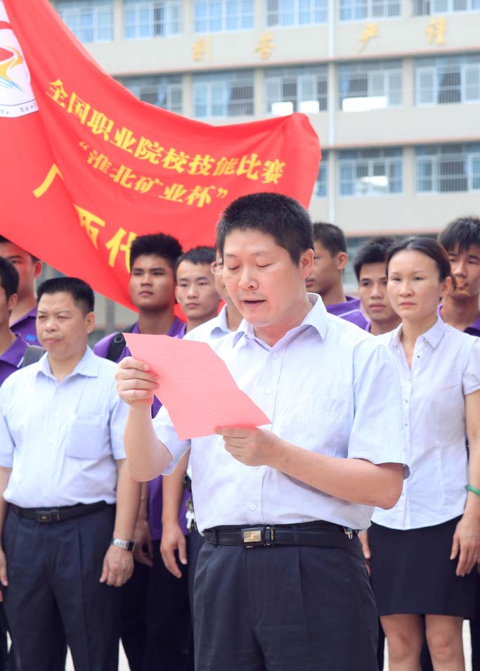 指導(dǎo)教師代表韋世集和選手代表?xiàng)顒亠h分別發(fā)言。在發(fā)言中,他們感謝右江礦務(wù)局和學(xué)校在比賽訓(xùn)練中給予的大力支持。表示在比賽中,將竭盡所能,爭取最好的成績,為廣西,為我校爭得榮譽(yù)。