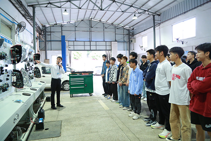 教師在講解汽車車身電路基礎(chǔ)知識及功能使用