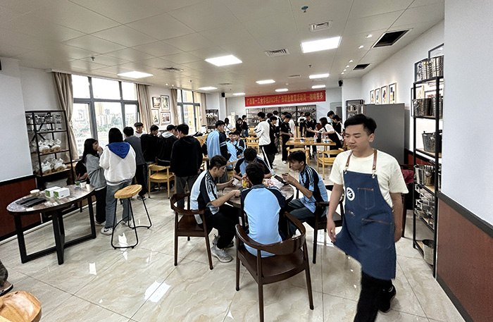 5月18日,學(xué)校還參加了梧州職業(yè)學(xué)院舉辦的廣西2023年職業(yè)教育活動周主題展示,向來賓展示手沖咖啡、咖啡拉花、雕花技術(shù)、意式濃縮以及各種花式咖啡的制作等多種咖啡技藝。自治區(qū)教育廳廳長劉友誼、南寧師范大學(xué)職業(yè)技術(shù)教育學(xué)院院長王屹蒞臨我校展位指導(dǎo)工作,并對我校職業(yè)教育發(fā)展取得的成績給予了肯定。