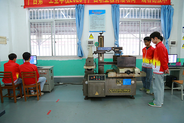 學(xué)生在了解電火花線切割技術(shù)