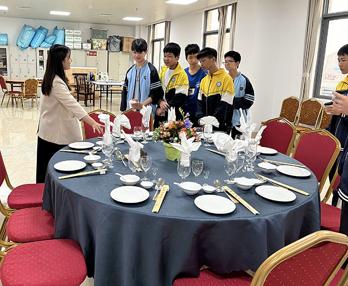 教師向?qū)W生介紹中餐擺臺知識
