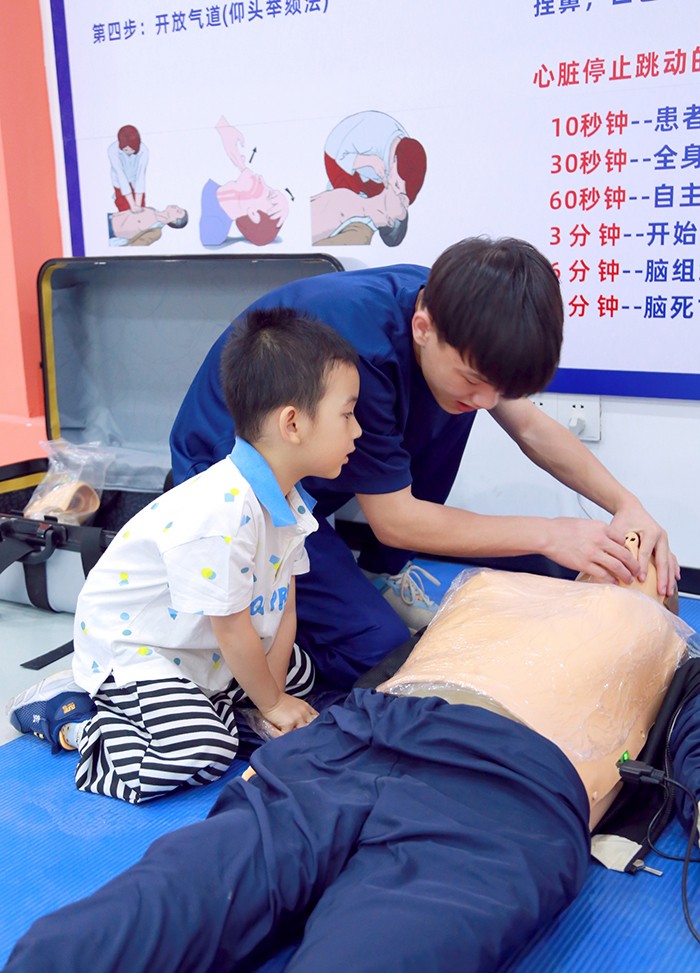 “萌娃”們?cè)趯W(xué)校消防工程技術(shù)專業(yè)大哥哥們的指導(dǎo)下,進(jìn)行了模擬消防電話報(bào)警、模擬滅火、火場(chǎng)疏散逃生演練、結(jié)繩訓(xùn)練、高空緩降體驗(yàn)、心肺復(fù)蘇訓(xùn)練等豐富多彩的消防安全體驗(yàn)活動(dòng)。