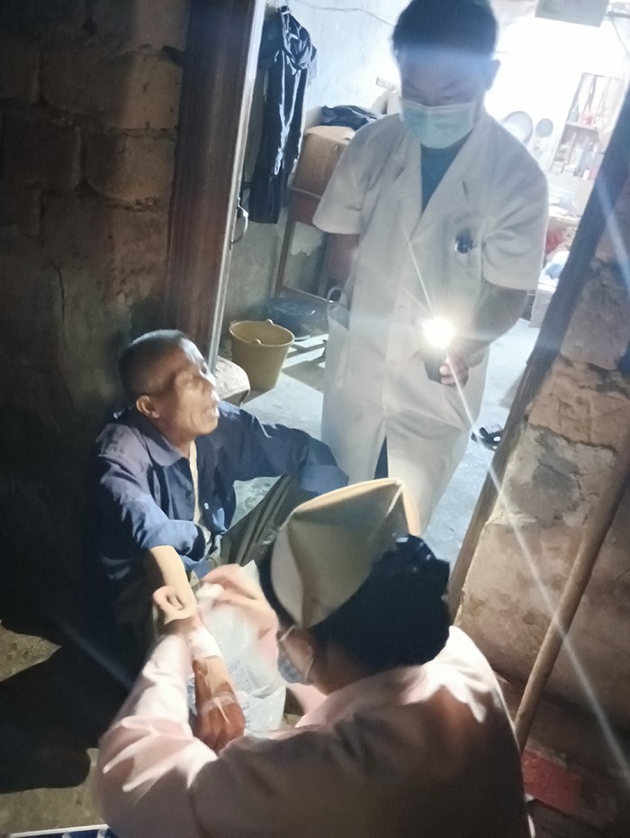 歐陽遠(yuǎn)洲了解到該脫貧戶有急性病的病史,又是孤寡老人時(shí),感到事態(tài)緊急,立馬起床撥打120,將脫貧戶廖建佳的病史、突發(fā)情況原因、家庭位置告訴了醫(yī)院,同時(shí)也顧不上整理儀容,穿著球服就快速出發(fā)趕到廖建佳家。當(dāng)看到廖建佳喘氣吃力,歐陽書記又采取了簡易的醫(yī)療手法幫助其順暢呼吸。不久后,醫(yī)生也來到了現(xiàn)場(chǎng),歐陽書記在協(xié)助醫(yī)生做好安全措施,救護(hù)老人脫離生命危險(xiǎn)后,主動(dòng)將廖建佳背到救護(hù)車上,連夜送往鐘山縣人民醫(yī)院治療。