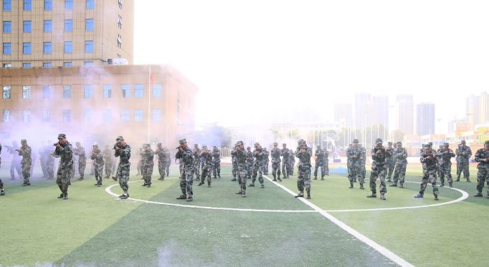 隨后,依次進(jìn)行分列式表演、拳術(shù)表演、匕首操表演、戰(zhàn)術(shù)表演,動作快、狠、準(zhǔn),剛勁有力、整齊劃一,贏得現(xiàn)場師生陣陣喝彩。