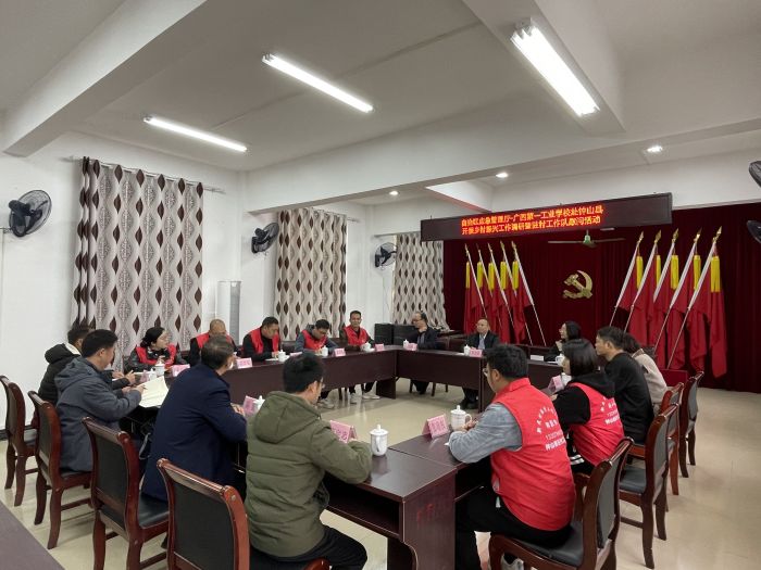 在珊瑚鎮(zhèn)新民村,調研組召開座談會。會上,新民村駐村工作隊作鄉(xiāng)村振興工作匯報,與會人員進行座談交流。鐘山縣委常委、副縣長陳智講話,他強調,駐村工作隊要提高政治站位,切實壓緊壓實責任,落實落細鄉(xiāng)村振興工作措施。校長黃杰品表示,學校會充分發(fā)揮后盾單位的特色優(yōu)勢,全力支持駐點村的鄉(xiāng)村振興工作。